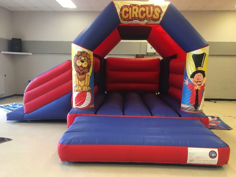 14ft x 18ft Red and Blue Side Slide Velcro range (plus 8ft extra in length for mats and blowers and an extra 4ft in width for mats)